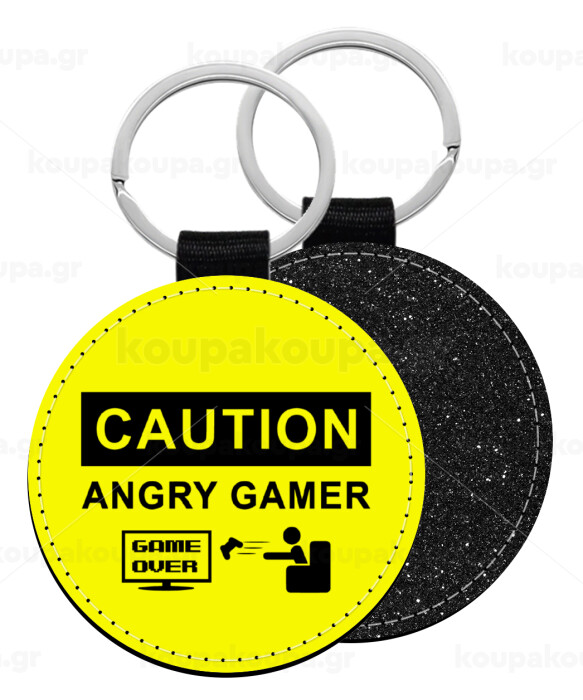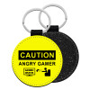 Caution, angry gamer!, Μπρελόκ Δερματίνη, στρογγυλό ΜΑΥΡΟ (5cm)