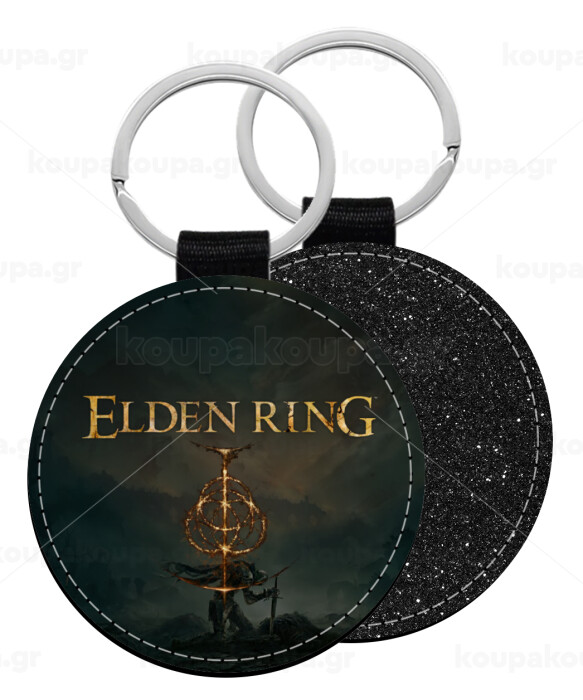Elden Ring, Μπρελόκ Δερματίνη, στρογγυλό ΜΑΥΡΟ (5cm)