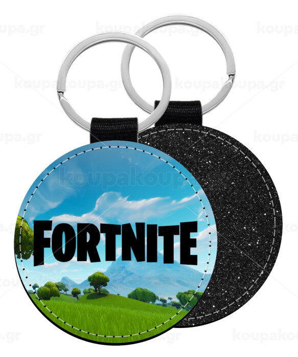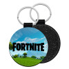 Fortnite landscape, Μπρελόκ Δερματίνη, στρογγυλό ΜΑΥΡΟ (5cm)
