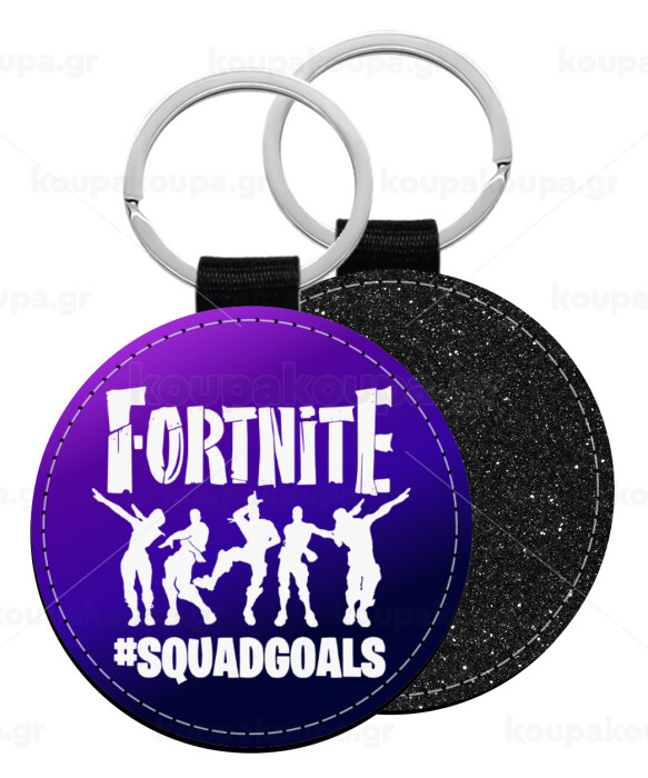 Fortnite #squadgoals, Μπρελόκ Δερματίνη, στρογγυλό ΜΑΥΡΟ (5cm)