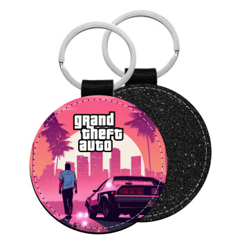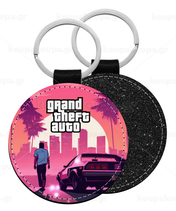 GTA (grand theft auto), Μπρελόκ Δερματίνη, στρογγυλό ΜΑΥΡΟ (5cm)