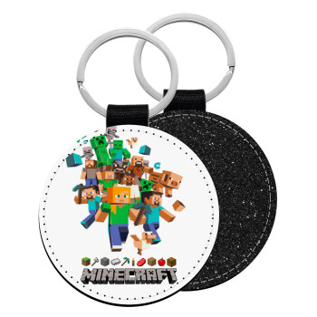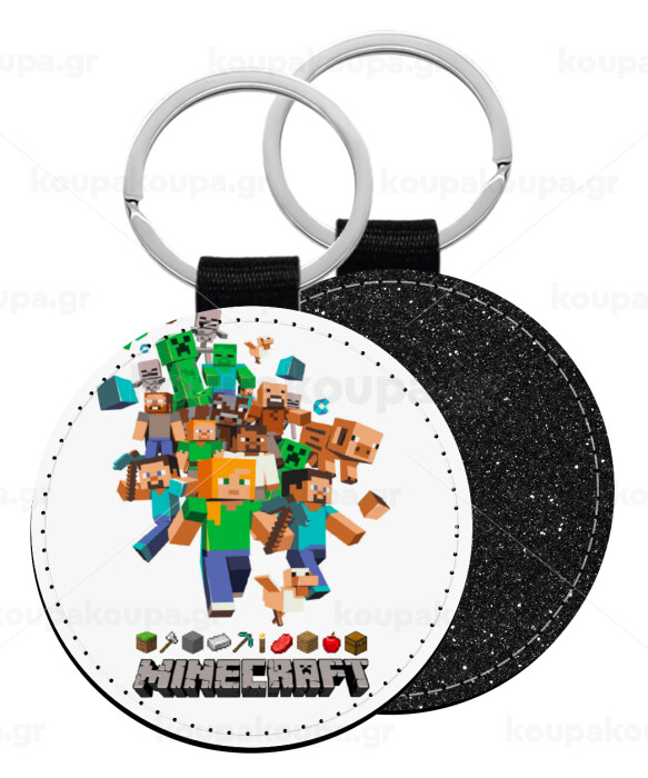 Minecraft adventure, Μπρελόκ Δερματίνη, στρογγυλό ΜΑΥΡΟ (5cm)