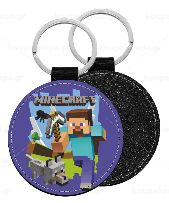 Minecraft Alex, Μπρελόκ Δερματίνη, στρογγυλό ΜΑΥΡΟ (5cm)