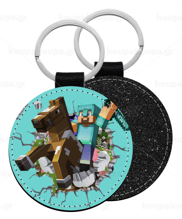Minecraft brick, Μπρελόκ Δερματίνη, στρογγυλό ΜΑΥΡΟ (5cm)