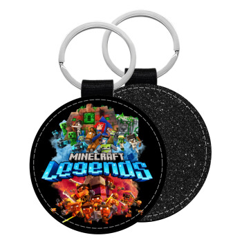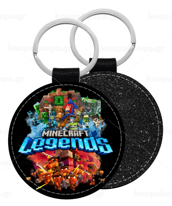 Minecraft legends, Μπρελόκ Δερματίνη, στρογγυλό ΜΑΥΡΟ (5cm)
