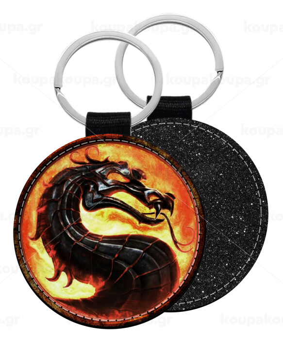 Mortal Kombat, Μπρελόκ Δερματίνη, στρογγυλό ΜΑΥΡΟ (5cm)