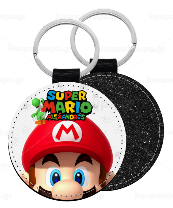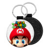 Super mario head, Μπρελόκ Δερματίνη, στρογγυλό ΜΑΥΡΟ (5cm)