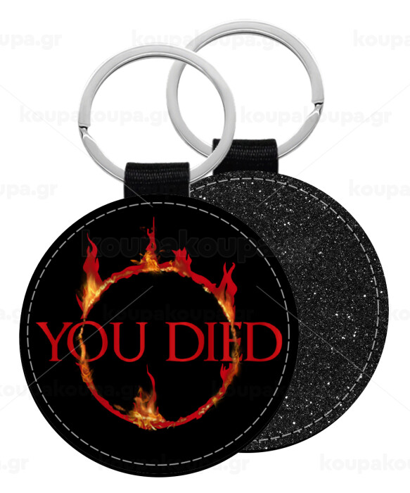 You Died | Dark Souls, Μπρελόκ Δερματίνη, στρογγυλό ΜΑΥΡΟ (5cm)