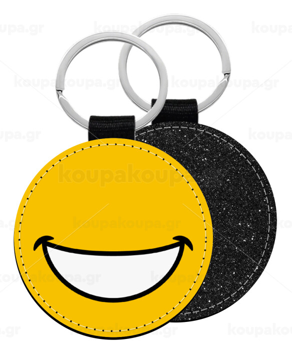Big Smile, Μπρελόκ Δερματίνη, στρογγυλό ΜΑΥΡΟ (5cm)
