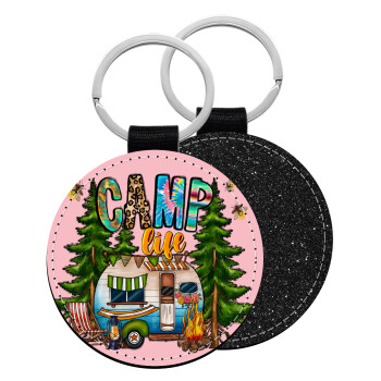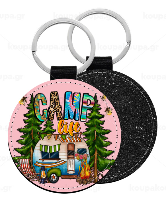 Camp Life, Μπρελόκ Δερματίνη, στρογγυλό ΜΑΥΡΟ (5cm)