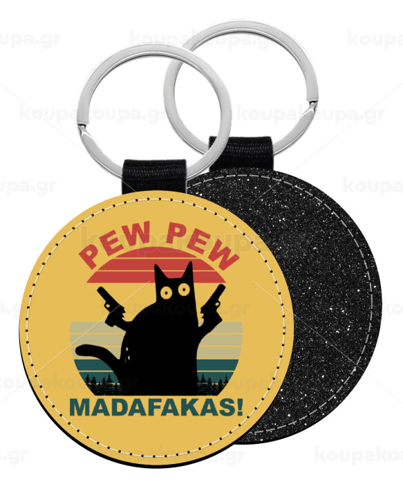 PEW PEW madafakas, Μπρελόκ Δερματίνη, στρογγυλό ΜΑΥΡΟ (5cm)