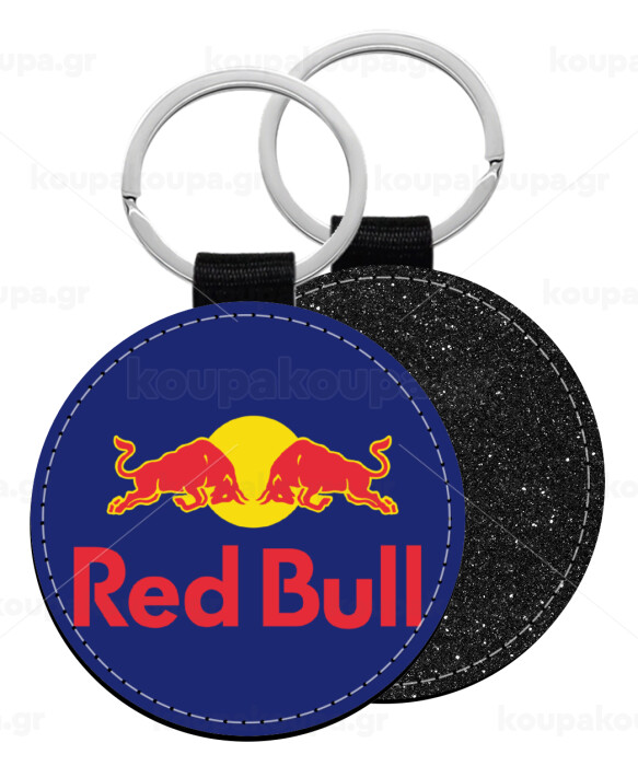 Redbull, Μπρελόκ Δερματίνη, στρογγυλό ΜΑΥΡΟ (5cm)