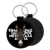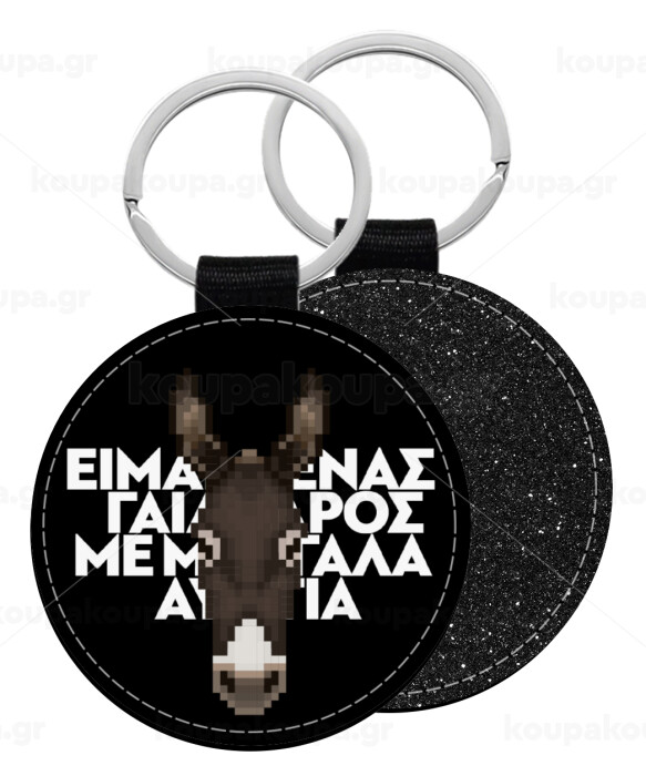 Είμαι ένας γάιδαρος με μεγάλα αυτιά., Μπρελόκ Δερματίνη, στρογγυλό ΜΑΥΡΟ (5cm)