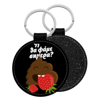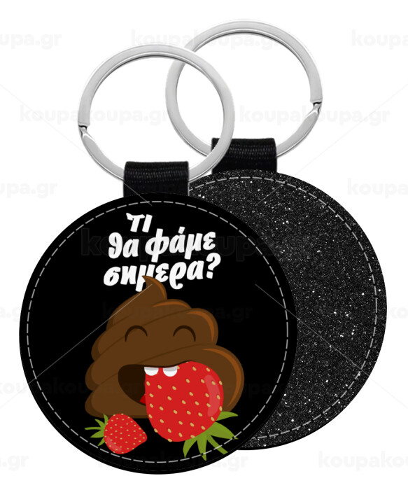 Τι θα φάμε σημερα???, Μπρελόκ Δερματίνη, στρογγυλό ΜΑΥΡΟ (5cm)