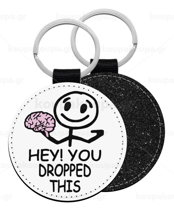 Hey! You dropped this, Μπρελόκ Δερματίνη, στρογγυλό ΜΑΥΡΟ (5cm)