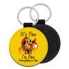 It's Fine I'm Fine Everything Is Fine, Μπρελόκ Δερματίνη, στρογγυλό ΜΑΥΡΟ (5cm)