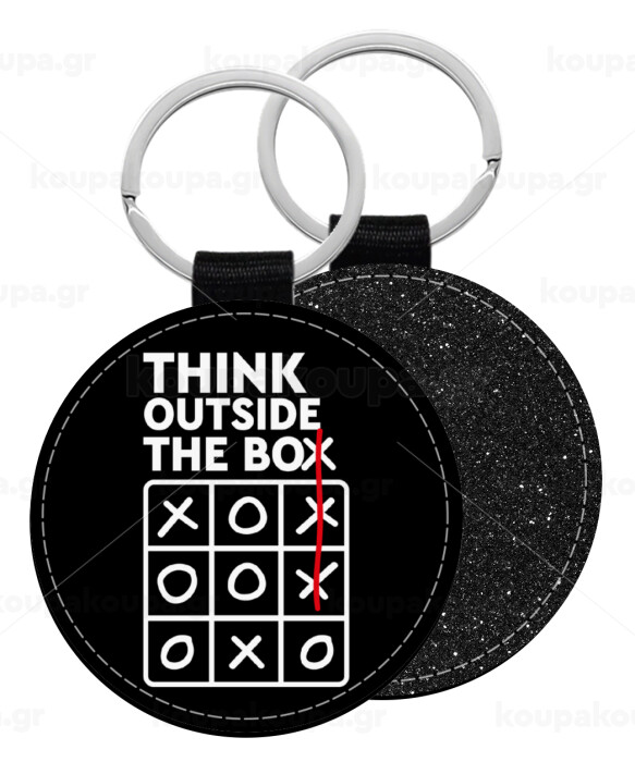 Think outside the BOX, Μπρελόκ Δερματίνη, στρογγυλό ΜΑΥΡΟ (5cm)