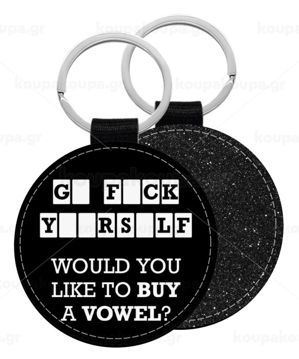 Wheel of fortune, go f..k yourself, Μπρελόκ Δερματίνη, στρογγυλό ΜΑΥΡΟ (5cm)