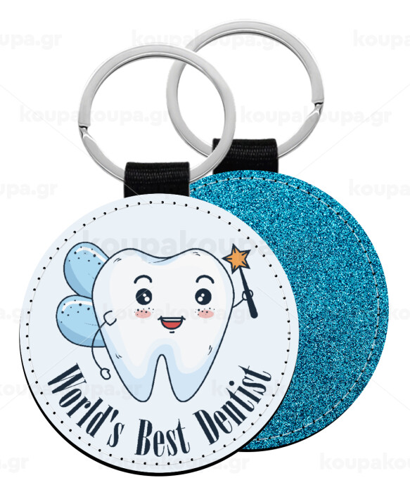 World's Best Dentist, Μπρελόκ Δερματίνη, στρογγυλό ΜΠΛΕ (5cm)