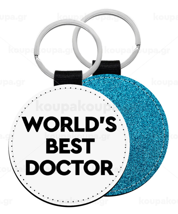 World's Best Doctor, Μπρελόκ Δερματίνη, στρογγυλό ΜΠΛΕ (5cm)