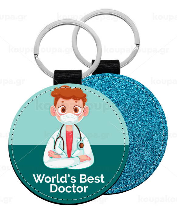 World's Best Doctor, Μπρελόκ Δερματίνη, στρογγυλό ΜΠΛΕ (5cm)