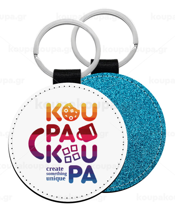 koupakoupa, Μπρελόκ Δερματίνη, στρογγυλό ΜΠΛΕ (5cm)