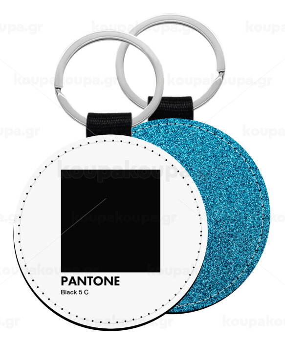 Pantone Black, Μπρελόκ Δερματίνη, στρογγυλό ΜΠΛΕ (5cm)