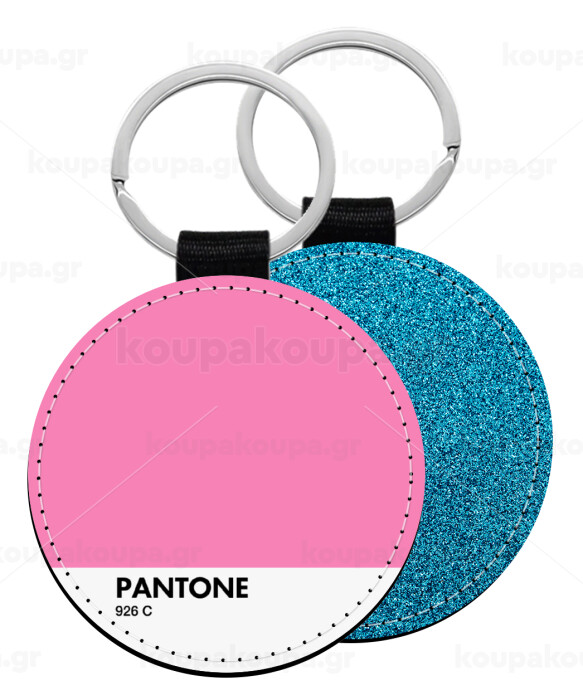 PANTONE Pink C, Μπρελόκ Δερματίνη, στρογγυλό ΜΠΛΕ (5cm)