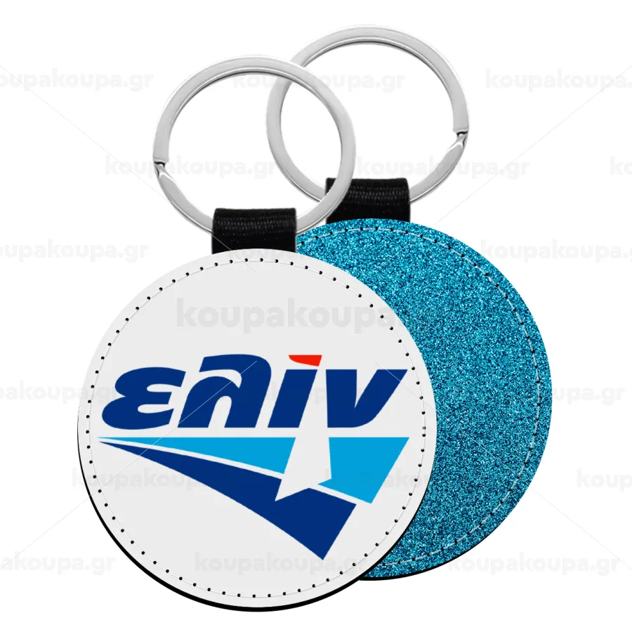 Πρατήριο καυσίμων ΕΛΙΝ, Μπρελόκ Δερματίνη, στρογγυλό ΜΠΛΕ (5cm)