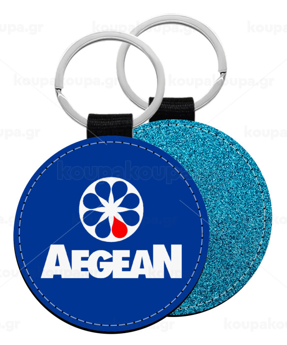 Πρατήριο καυσίμων AEGEAN, Μπρελόκ Δερματίνη, στρογγυλό ΜΠΛΕ (5cm)