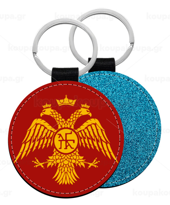 Byzantine Empire, Μπρελόκ Δερματίνη, στρογγυλό ΜΠΛΕ (5cm)