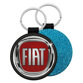 FIAT, Μπρελόκ Δερματίνη, στρογγυλό ΜΠΛΕ (5cm)
