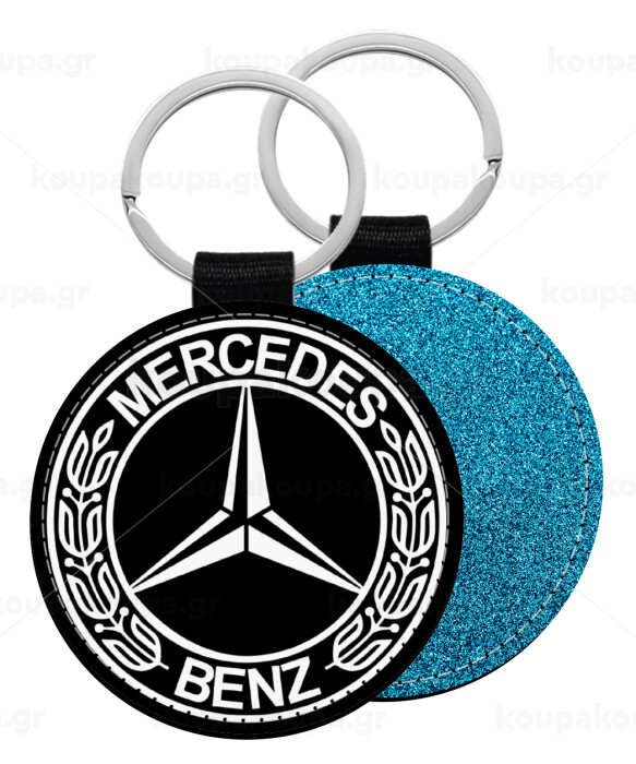 mercedes, Μπρελόκ Δερματίνη, στρογγυλό ΜΠΛΕ (5cm)