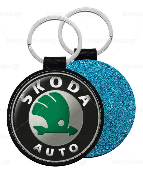 SKODA, Μπρελόκ Δερματίνη, στρογγυλό ΜΠΛΕ (5cm)