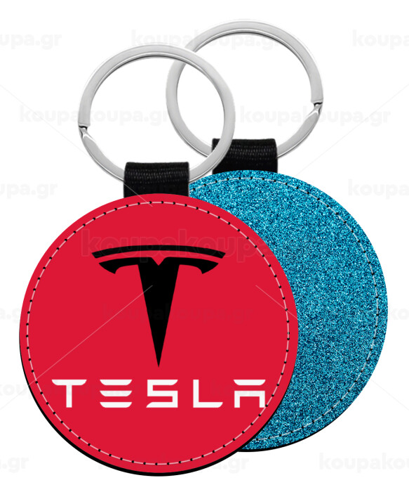 Tesla motors, Μπρελόκ Δερματίνη, στρογγυλό ΜΠΛΕ (5cm)