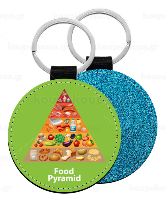 Food pyramid chart, Μπρελόκ Δερματίνη, στρογγυλό ΜΠΛΕ (5cm)