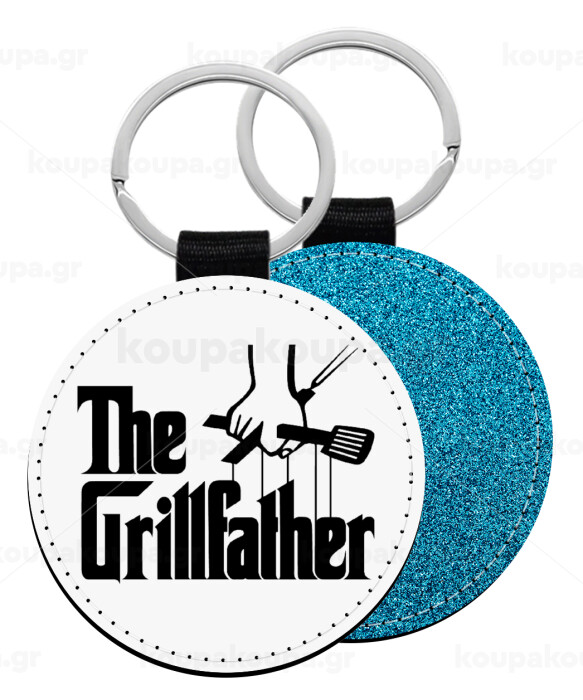 The Grill Father, Μπρελόκ Δερματίνη, στρογγυλό ΜΠΛΕ (5cm)