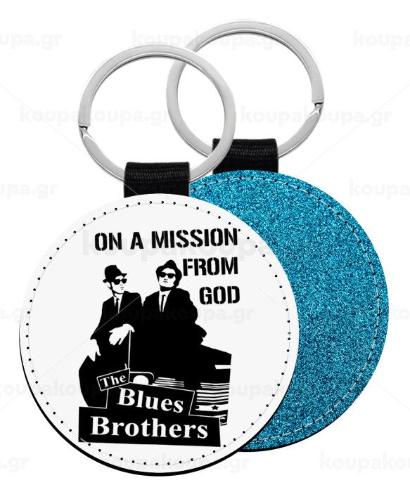 Blues brothers on a mission from God, Μπρελόκ Δερματίνη, στρογγυλό ΜΠΛΕ (5cm)