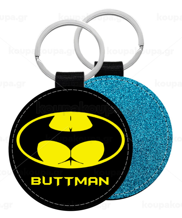 Buttman, Μπρελόκ Δερματίνη, στρογγυλό ΜΠΛΕ (5cm)