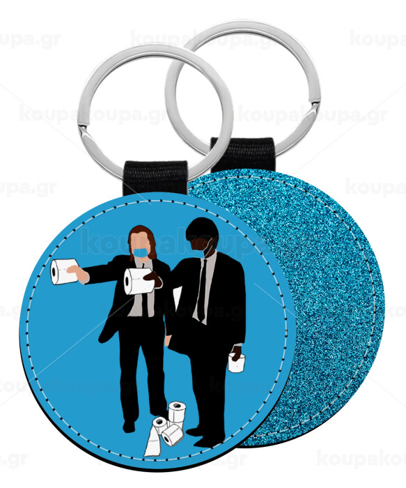 Pulp Fiction 3 meter away, Μπρελόκ Δερματίνη, στρογγυλό ΜΠΛΕ (5cm)