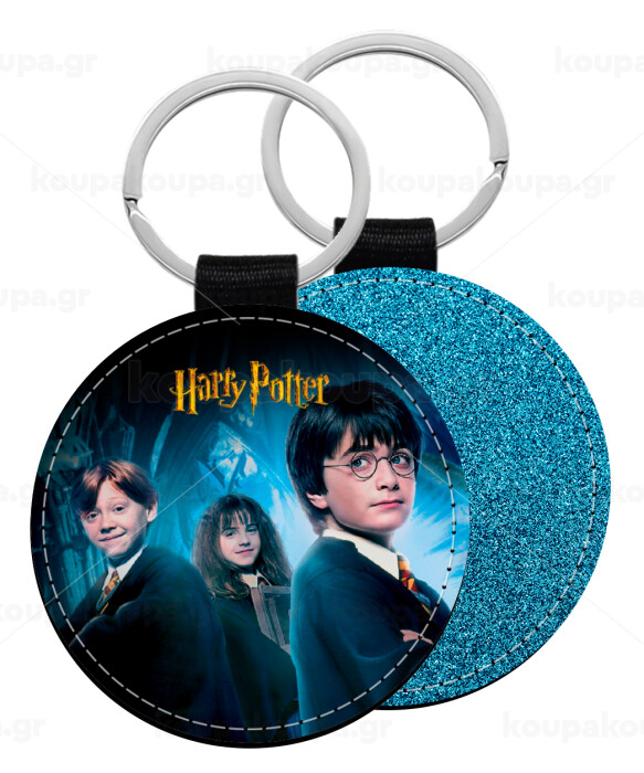 Harry potter and the philosopher's stone, Μπρελόκ Δερματίνη, στρογγυλό ΜΠΛΕ (5cm)