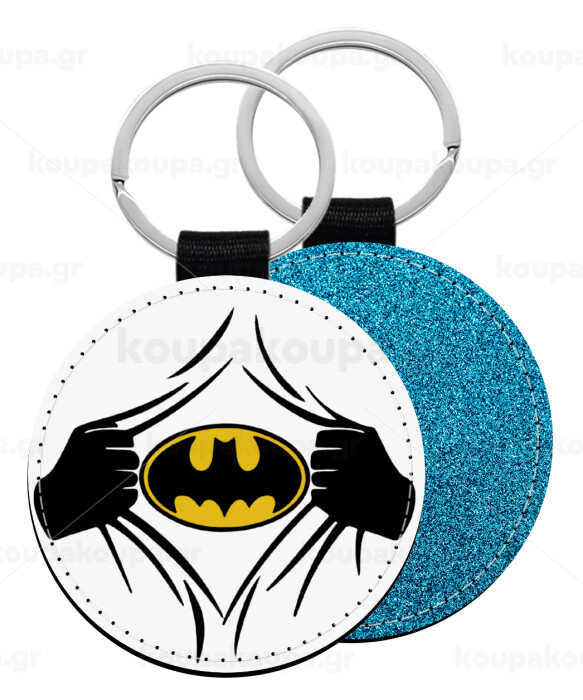 Hero batman, Μπρελόκ Δερματίνη, στρογγυλό ΜΠΛΕ (5cm)
