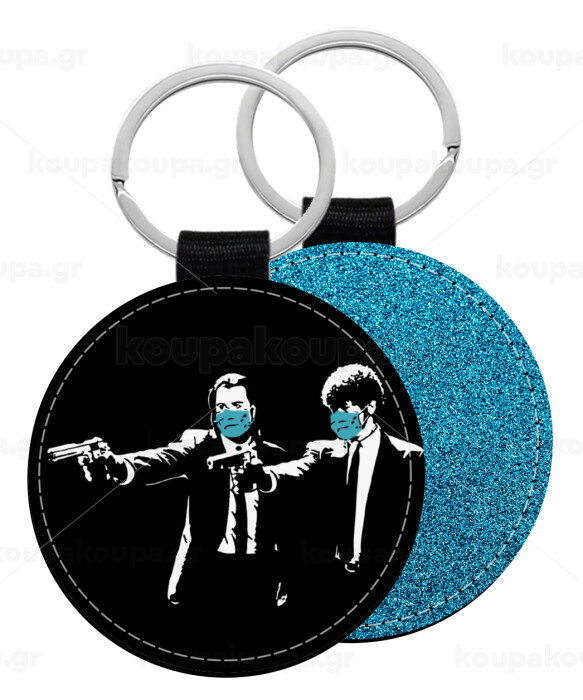 Pulp Fiction guns, Μπρελόκ Δερματίνη, στρογγυλό ΜΠΛΕ (5cm)
