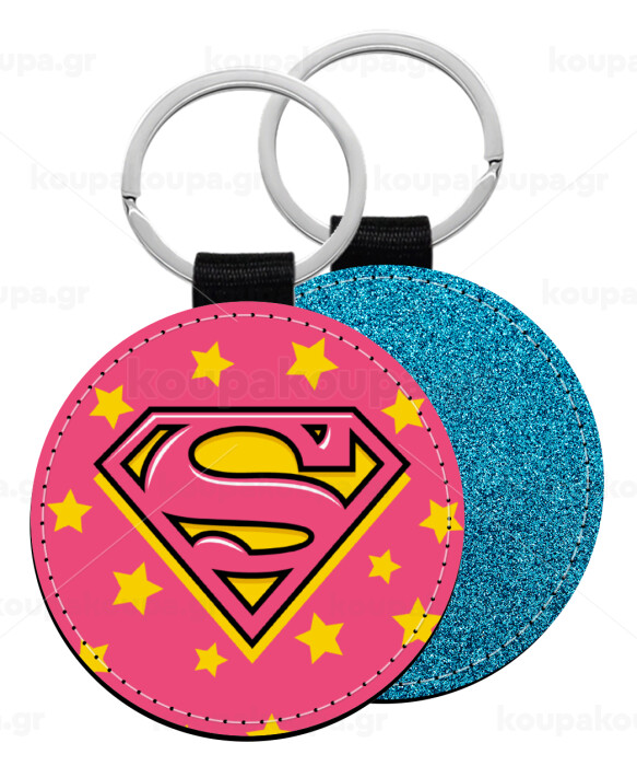 Superman Pink, Μπρελόκ Δερματίνη, στρογγυλό ΜΠΛΕ (5cm)