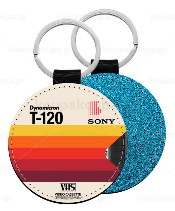 VHS sony dynamicron T-120, Μπρελόκ Δερματίνη, στρογγυλό ΜΠΛΕ (5cm)