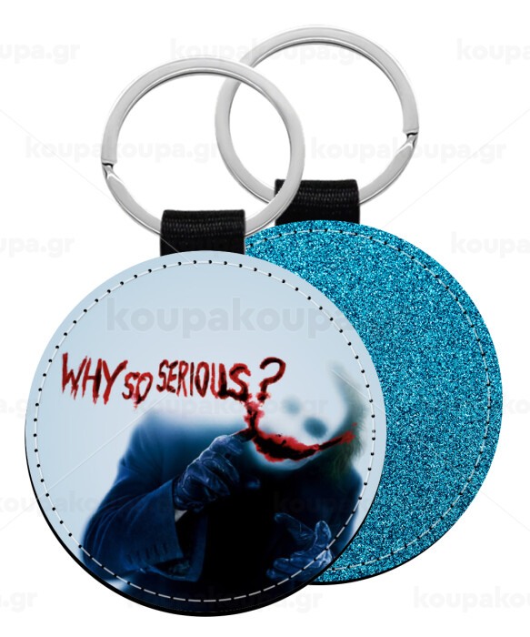 Why so serious?, Μπρελόκ Δερματίνη, στρογγυλό ΜΠΛΕ (5cm)