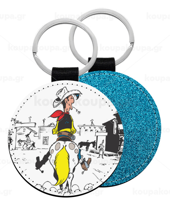 Lucky Luke comic, Μπρελόκ Δερματίνη, στρογγυλό ΜΠΛΕ (5cm)