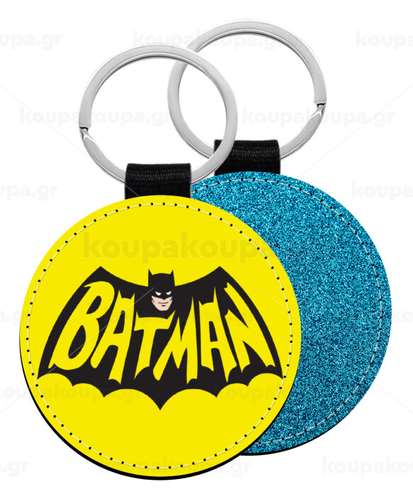 Batman classic logo, Μπρελόκ Δερματίνη, στρογγυλό ΜΠΛΕ (5cm)