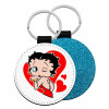 Betty Boop, Μπρελόκ Δερματίνη, στρογγυλό ΜΠΛΕ (5cm)