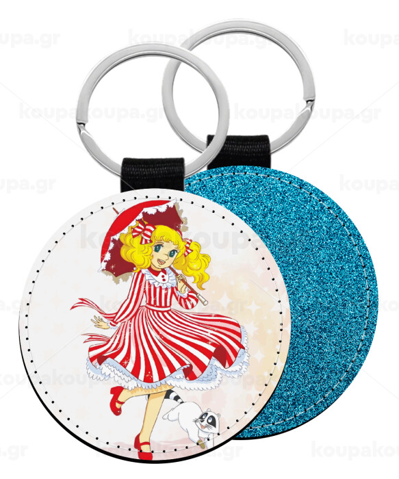 Candy, Μπρελόκ Δερματίνη, στρογγυλό ΜΠΛΕ (5cm)